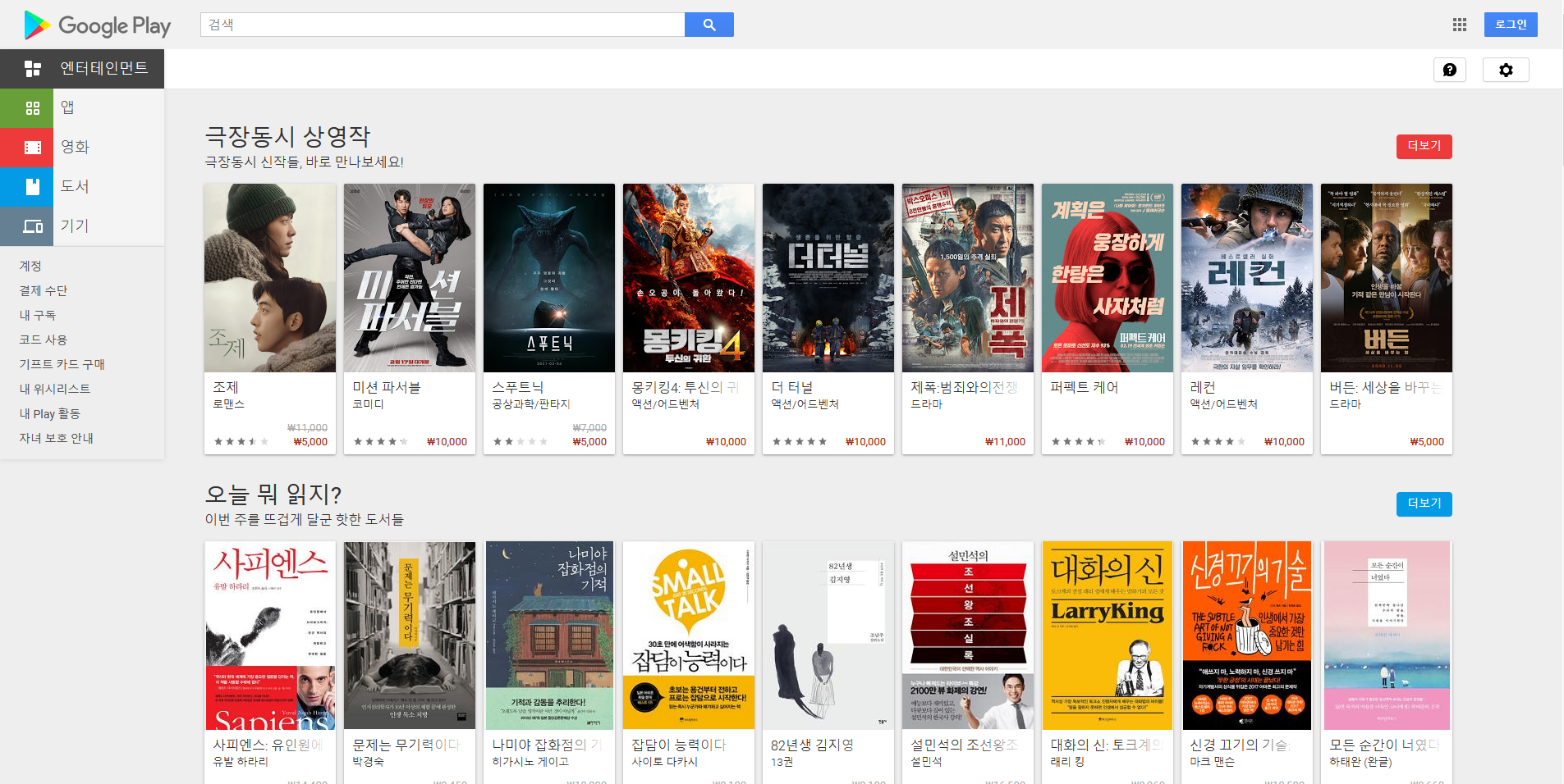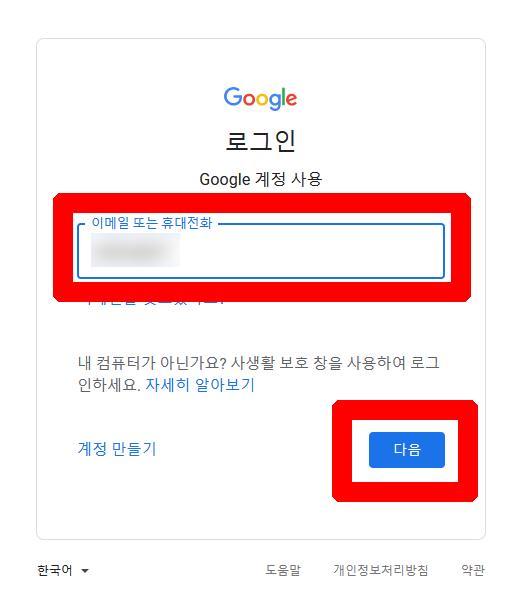 구글플레이 페이지 오른쪽 상단에 있는 로그인을 눌러 구글에 로그인진행