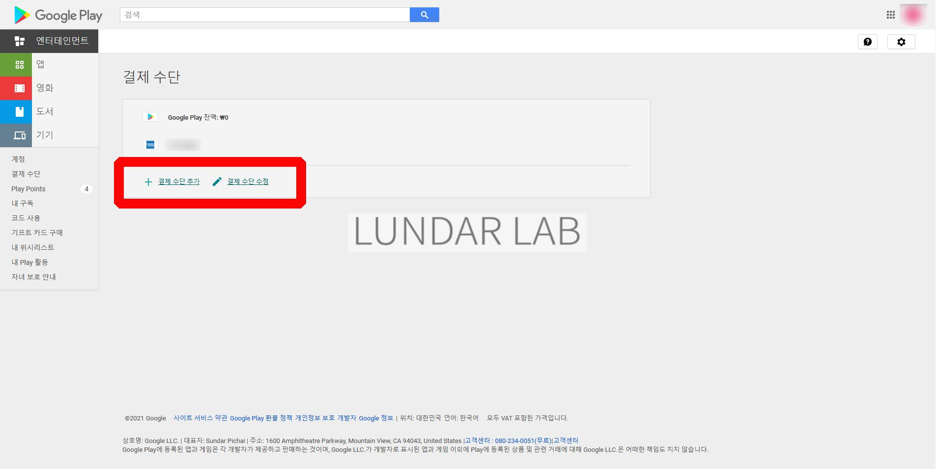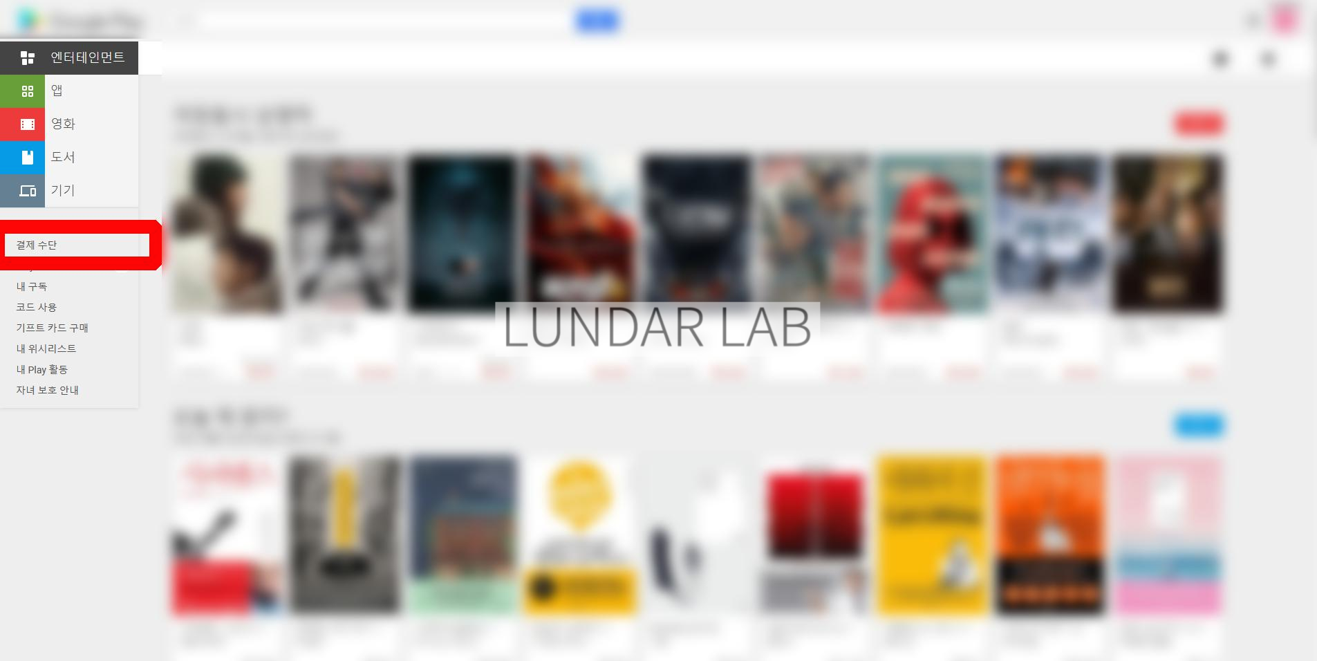 3. 구글 플레이 화면에서 왼쪽 메뉴들 중 '결제 수단' 클릭
