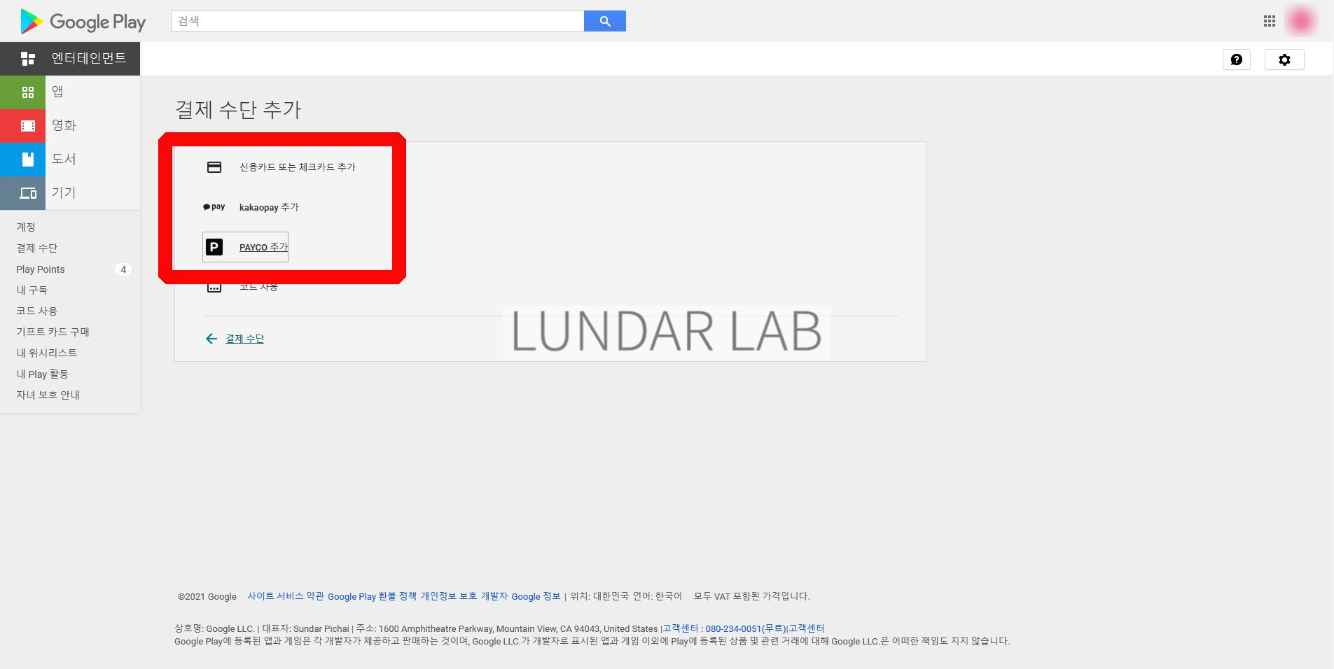 5. 신용카드 또는 체크카드, 페이코 또는 카카오페이 결제 수단 추가 진행